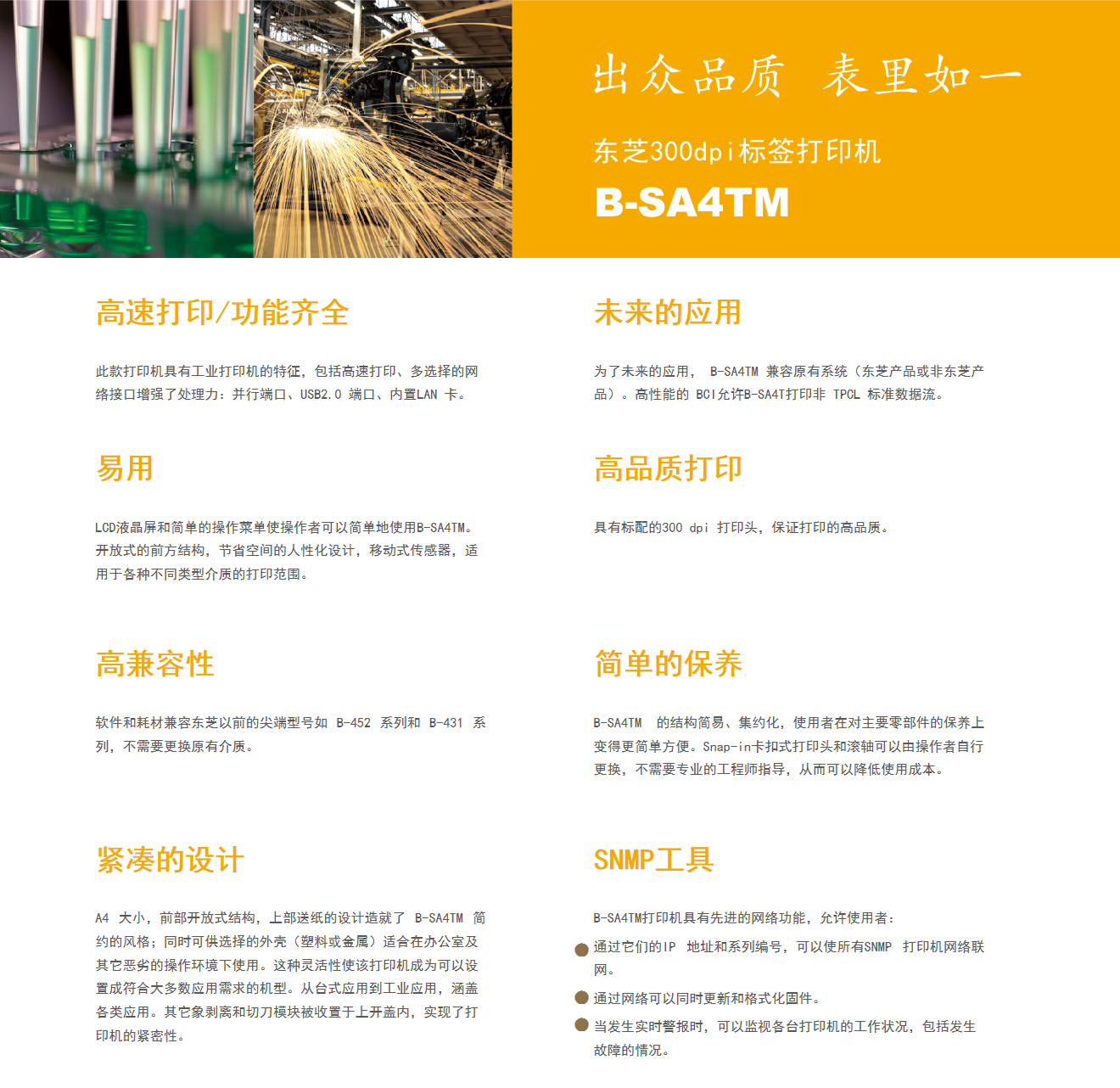 機器外形小巧、簡單易用,卻具有工業(yè)打印機功能完整、牢固耐用的特點。先進的網(wǎng)絡(luò)功能,可支持現(xiàn)今主流的通訊端口,使用戶可以通過網(wǎng)絡(luò)對打印機進行遠程管理。人性化設(shè)計適用于安靜的辦公環(huán)境,高質(zhì)量的打印輸出和出色的功能保證,又同樣適用于重工業(yè)環(huán)境。在打印應(yīng)用方面,真正地提供了“解決方案”,成為全球公認的品牌。
