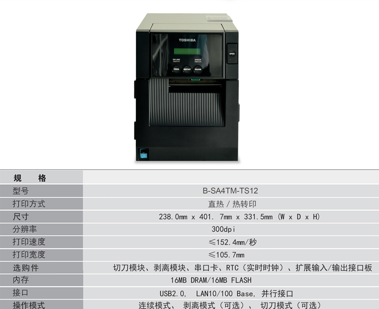 | 可選件 | 切刀模塊、剝離模塊、串行接口板、RFID 模塊、擴展輸入/輸出接口板、實時時鐘 |